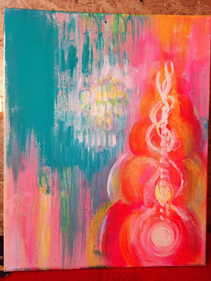 Hieronder een selectie van mijn schilderijen (vrij werk). Het voelt alsof ik verbinding kan maken met andere dimensies, alsof wezens zich willen laten zien en ik ze dat podium kan bieden.